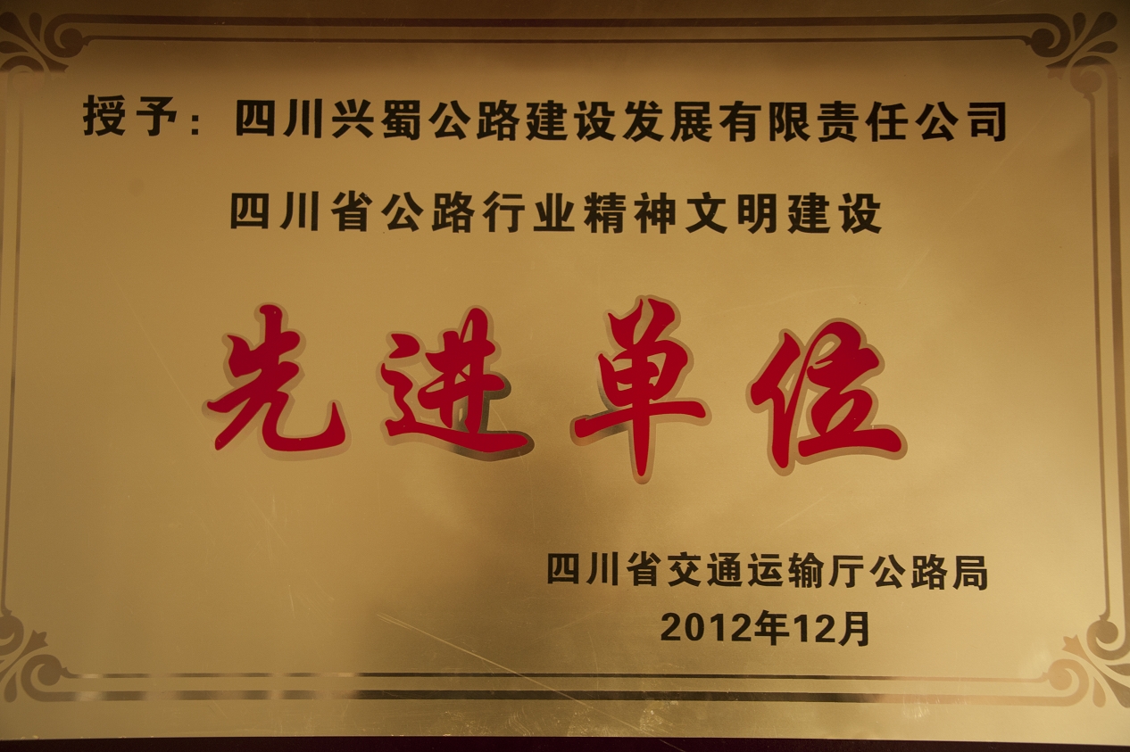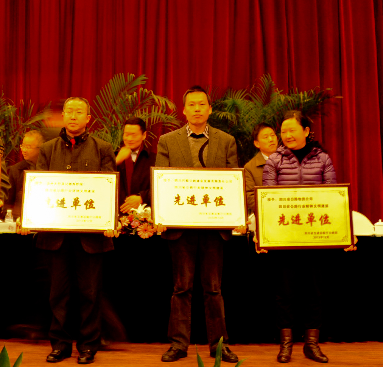 近年來(lái), 興蜀公司以企業(yè)文化建設(shè)為主線,積極開(kāi)展精神文明創(chuàng)建活動(dòng),在全公司形成了上下同心促建設(shè)、干群同向謀發(fā)展的強(qiáng)大合力, 全面提升了精神文明建設(shè)水平,有力促進(jìn)了企業(yè)資源整合和思想文化融合,實(shí)現(xiàn)了工程建設(shè)和精神文明建設(shè)的統(tǒng)籌推進(jìn)和共同提升。公司也被上級(jí)評(píng)為“四川省公路行業(yè)精神文明建設(shè)先進(jìn)單位”;鞠友才同志被評(píng)為“四川公路系統(tǒng)精神文明建設(shè)先進(jìn)工作者”;馮靜怡、陽(yáng)江林等同志被評(píng)為“四川公路系統(tǒng)文明職工標(biāo)兵”。