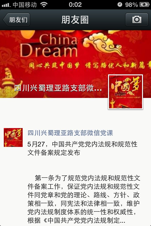 在“實現(xiàn)偉大中國夢,建設美麗繁榮和諧” 主題教育活動中,興蜀公司理亞路黨支部利用新媒體,開通微信黨務平臺取得良好的宣傳效果,微信黨務平臺也很快成為廣大黨員干部日常交流學習的重要平臺。