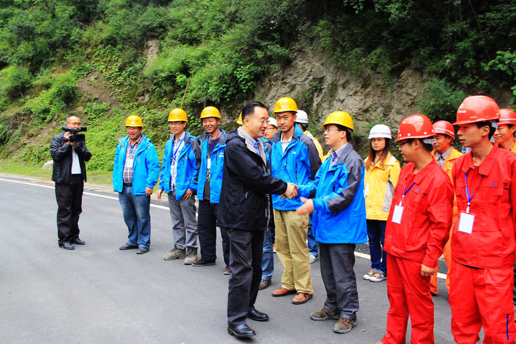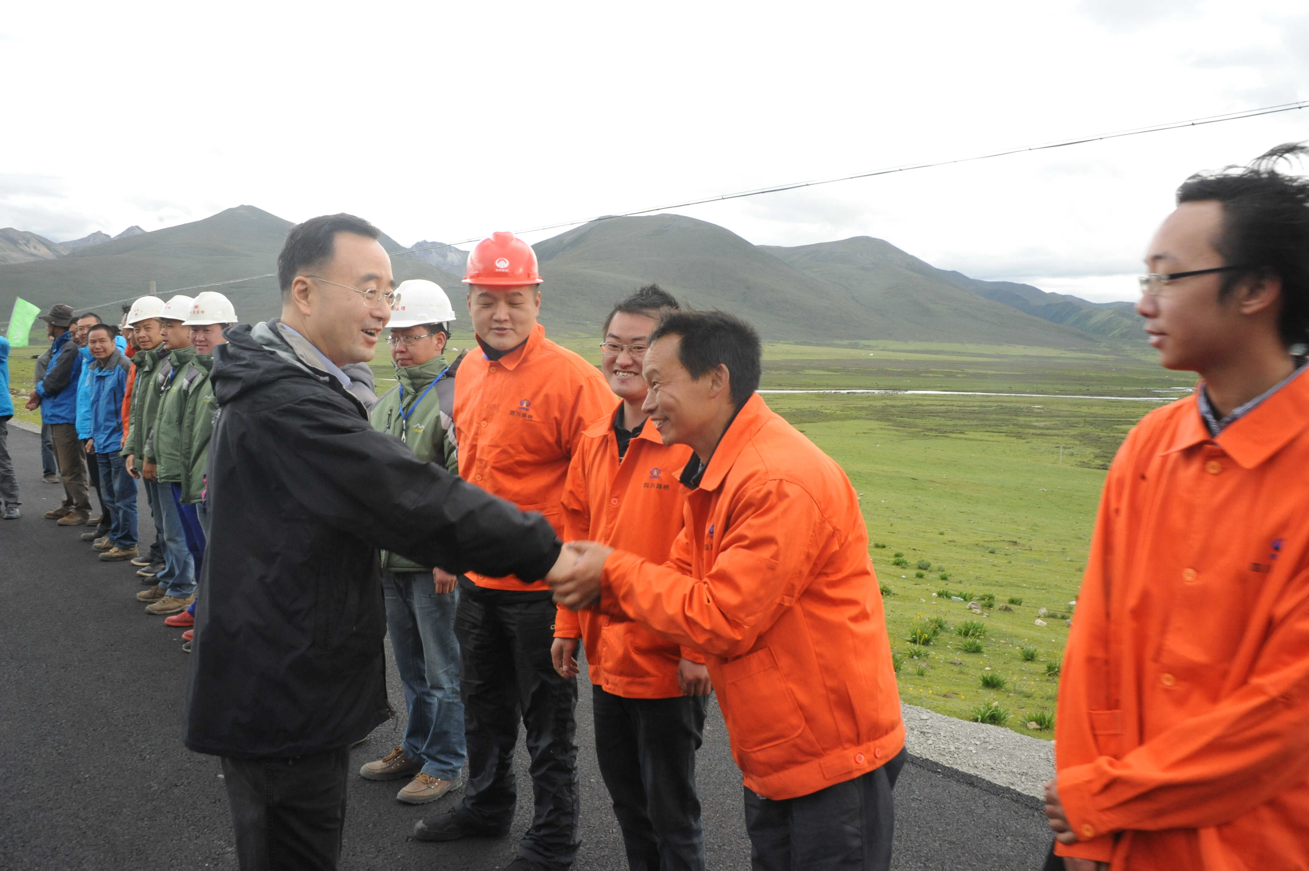 在實(shí)地檢查了項(xiàng)目建設(shè),和聽取了G318線東海路指揮部對項(xiàng)目的整體工作匯報(bào),特別是針對全線推廣的 “五化”管理模式后,高烽副主席充分肯定了G318線東海路項(xiàng)目今年的建設(shè)成就,認(rèn)為理塘至海子山段不僅路面質(zhì)量優(yōu)良,而且注重生態(tài)環(huán)境建設(shè),初步達(dá)到了認(rèn)真貫徹川九路建設(shè)理念的效果。隨后高副主席與一線干部職工一一握手,親切慰問。向所有參建人員的辛勞工作表示感謝,感謝大家為四川藏區(qū)的交通建設(shè)所做出的貢獻(xiàn)。