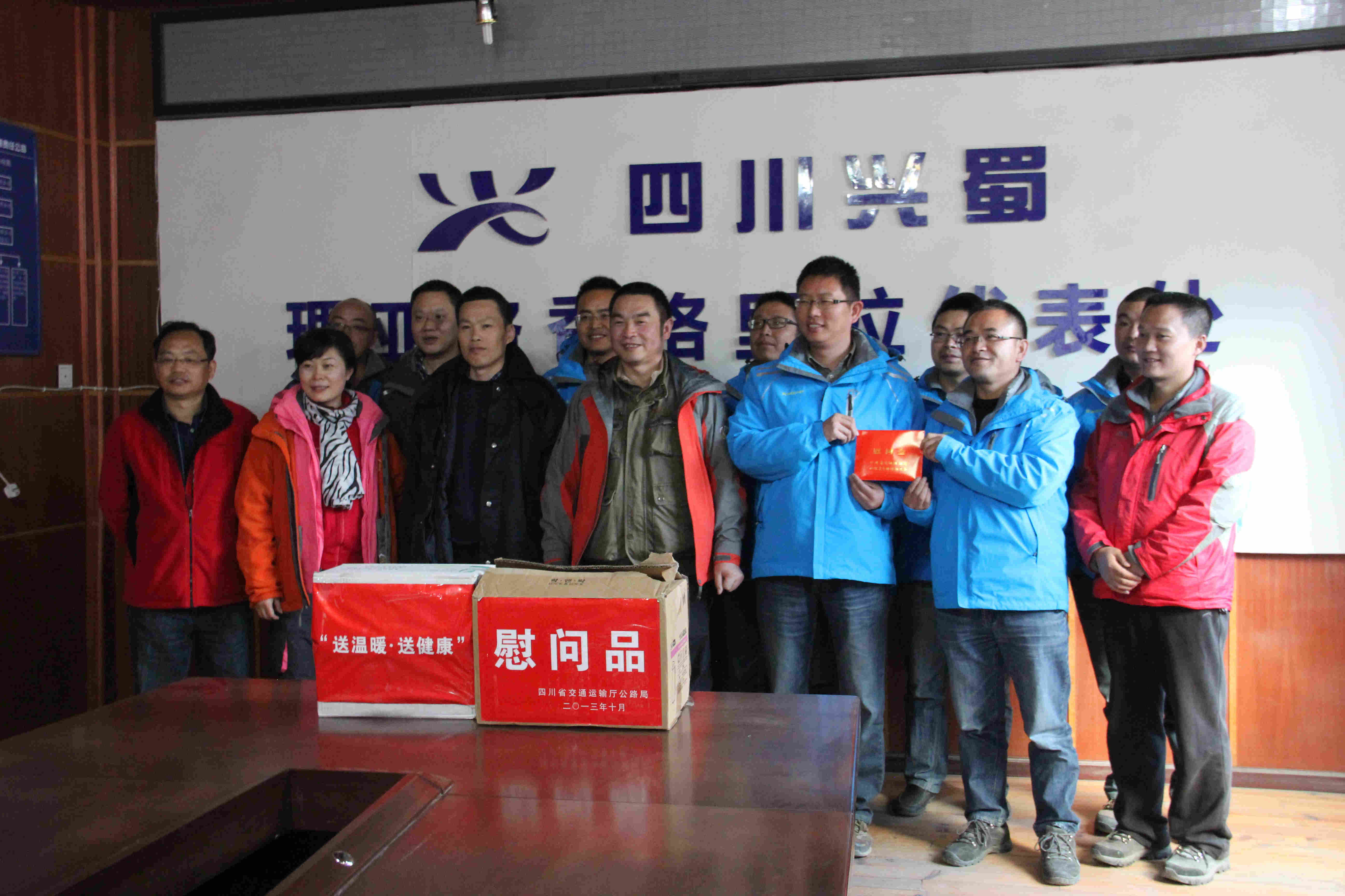 2013年10月23日,省交通運(yùn)輸廳副巡視員、工會(huì)主席陳雙全率省交通運(yùn)輸工會(huì)、省公路局工會(huì)主席謝能劍一行在興蜀公司董事長曾宇、工會(huì)主席劉健的陪同下,對省道216/217線理亞路建設(shè)者進(jìn)行了慰問。并于23日晚在理亞路香格里拉代表處駐地舉行了“送溫暖、送健康”慰問職工群眾篝火文藝晚會(huì)。