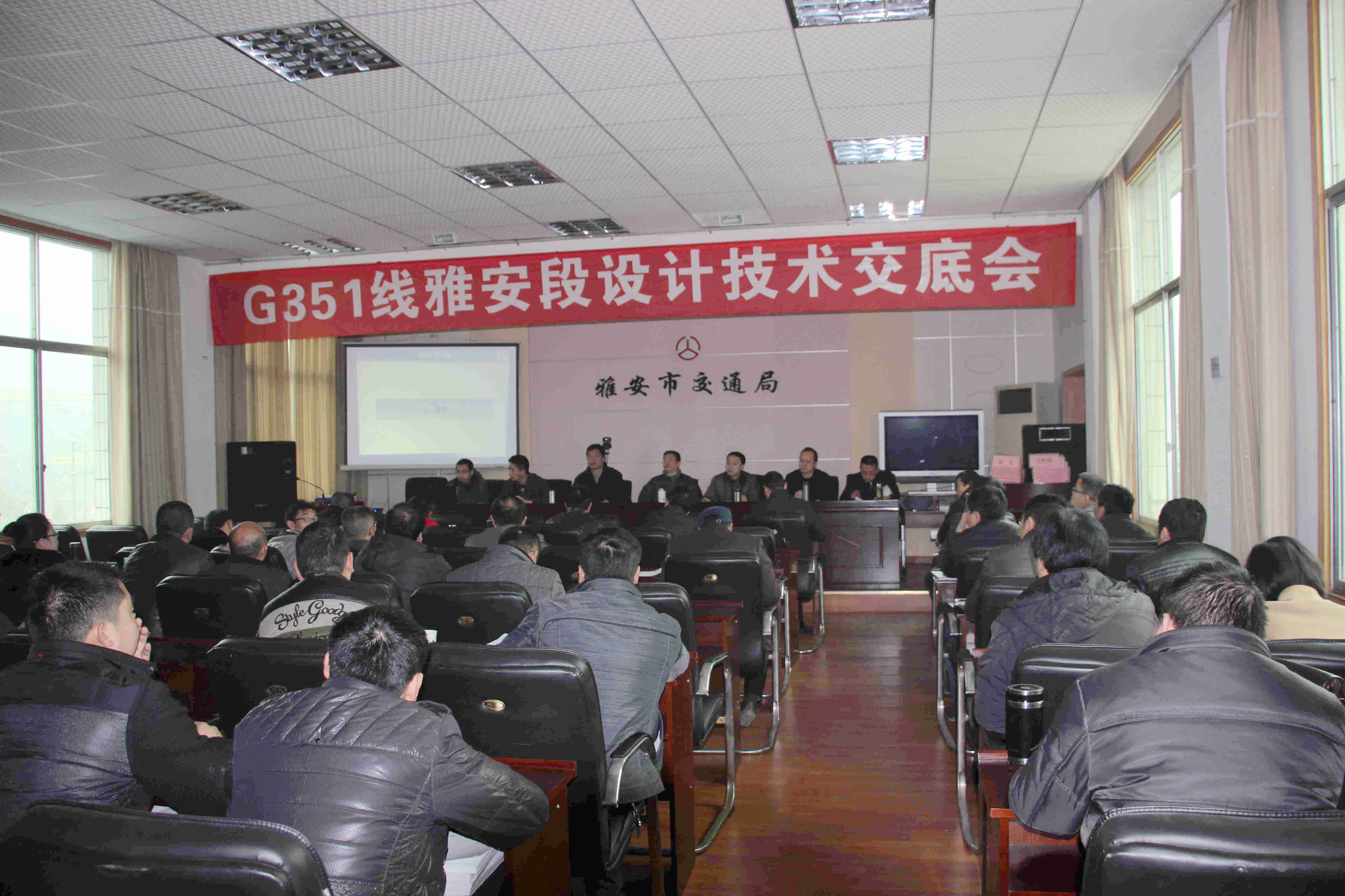 2014年2月25日上午,G351線雅安段設(shè)計(jì)技術(shù)交底會(huì)在雅安市交通運(yùn)輸局四樓會(huì)議室順利召開。會(huì)議由興蜀公司G351線雅安段指揮部副指揮長潘華主持,四川省公路設(shè)計(jì)院后期服務(wù)中心主任林順、總工辦馬洪生一行、雅安市交通災(zāi)后重建工作組工程部長趙飛勇以及G351線各標(biāo)段施工單位、監(jiān)理單位參會(huì)。