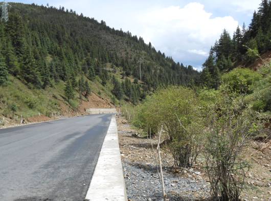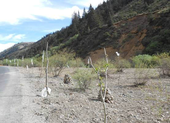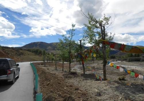 項目沿線喬、灌木較多,為最大限度地保護生態(tài)環(huán)境和原有植被,公司理亞路指揮部在部分路段和景觀點直接進行了喬灌木移植,盡量保留原有高原生態(tài)。