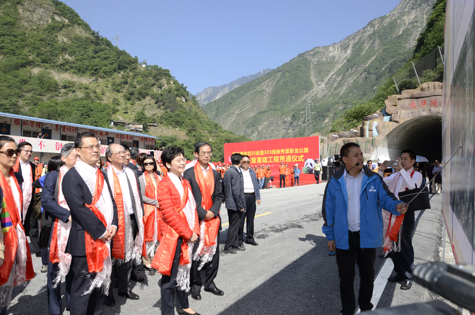 2016年5月11日,由香港特區(qū)援建的省道303線映(秀)臥(龍)路貫通儀式在南華隧道入口處舉行。香港特別行政區(qū)政務(wù)司司長林鄭月娥出席儀式,省政府副秘書長趙衛(wèi)平宣布貫通,廳黨組成員、總工程師陳樂生主持儀式。