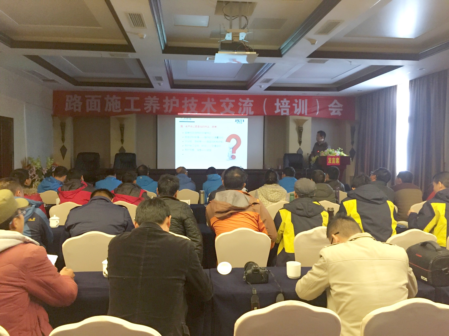 培訓(xùn)分別從 “高寒地區(qū)瀝青路面施工技術(shù)”、“瀝青路面配合比設(shè)計(jì)控制”、“試驗(yàn)室管理體系”、“新材料新技術(shù)交流”方面做了講解,并同各參會(huì)人員就施工過(guò)程中遇到的各類(lèi)實(shí)際問(wèn)題進(jìn)行了交流答疑。