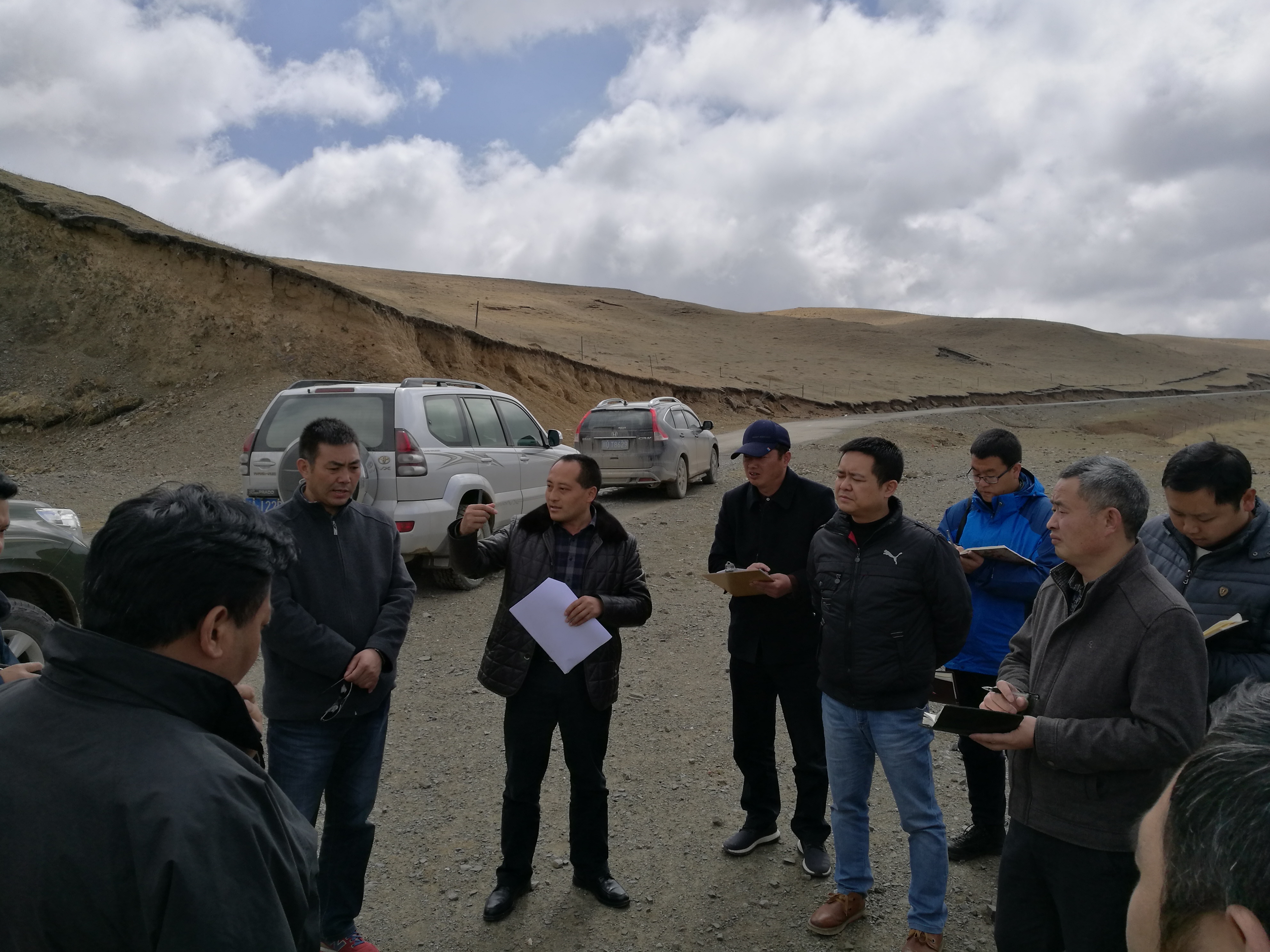 2017年4月21日,若爾蓋縣政府組織對興蜀公司建設管理的S217線唐花路料場選址情況進行現(xiàn)場踏勘。
