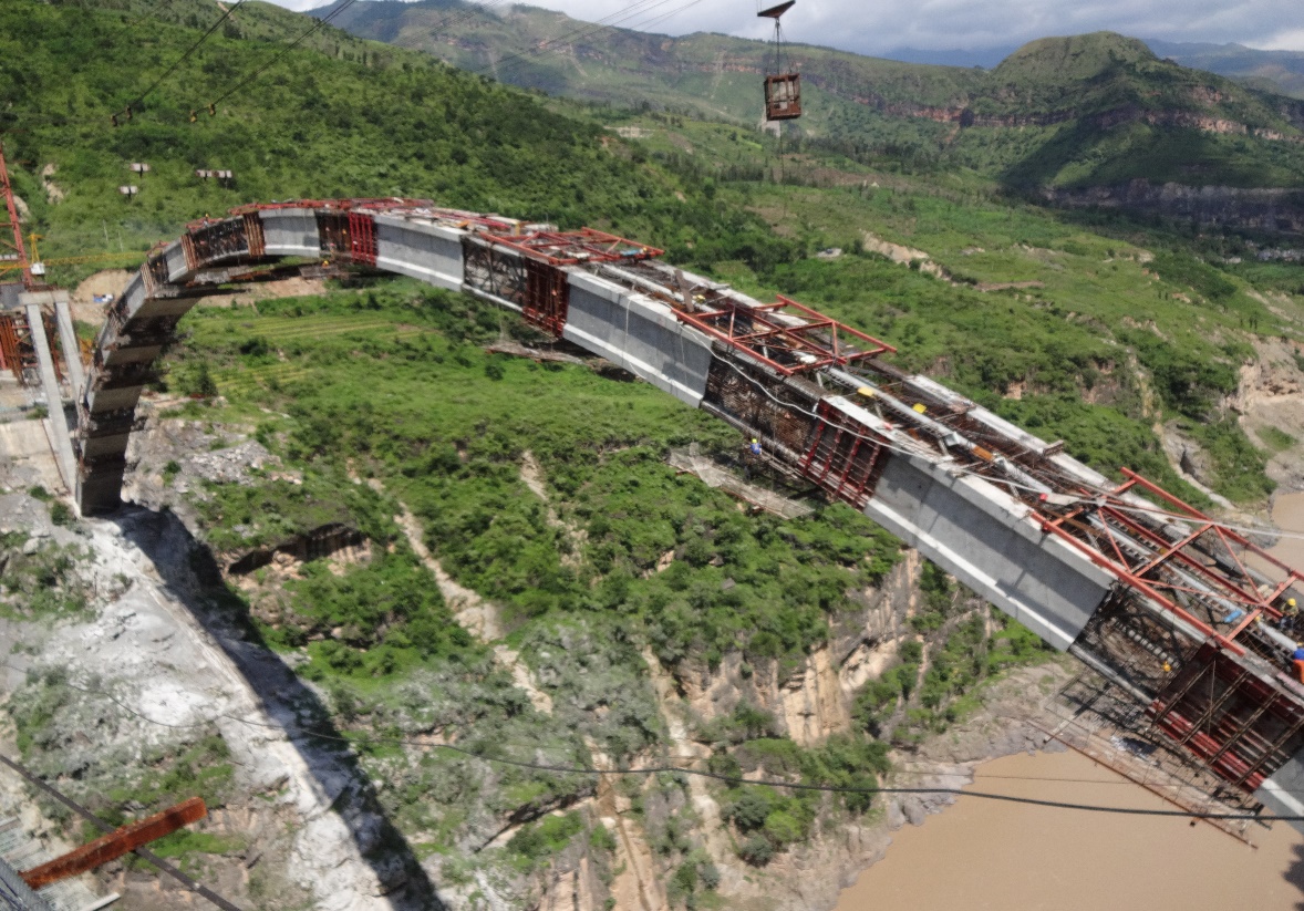 興蜀公司涼山溜索改橋指揮部布拖項(xiàng)目正進(jìn)行拱橋外包混凝土施工。拱圈作為拱橋主要承重系統(tǒng),跨越金沙江垂直高度230米,施工安全風(fēng)險(xiǎn)極大,是整個(gè)拱橋施工中的關(guān)鍵工序。項(xiàng)目自進(jìn)場(chǎng)以來,興蜀公司作為代建業(yè)主,帶領(lǐng)全體參建人員團(tuán)結(jié)一致、迎難而上,在確保質(zhì)量和安全的前提下優(yōu)化施工流程,加大監(jiān)管力度,全力拼搶工期,確保項(xiàng)目施工順利推進(jìn)。