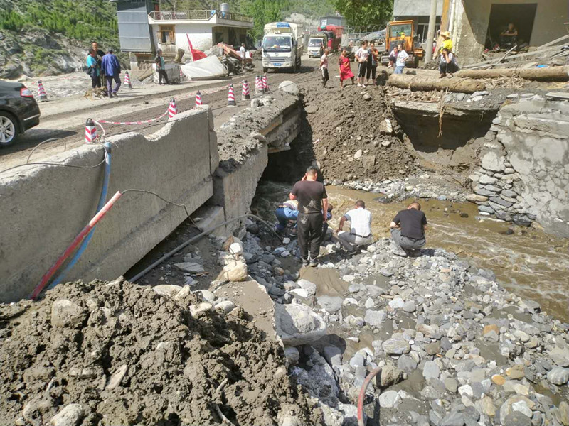 7月25日,茂縣受強降雨影響,國道213線K2052+257段渭門窄溪溝小橋局部受損,致使該處交通被迫中斷。應阿壩州交通運輸局要求,26日,興蜀公司、省公路設計院有限公司積極派專家前往山洪泥石流現(xiàn)場檢查受損橋梁,提出了針對性的道路保通措施及下一步應急搶險方案,確保過往車輛和乘客安全。
