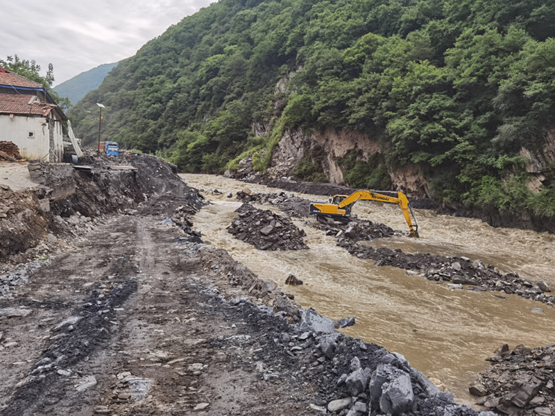 7月26日,黑水縣知木林鎮(zhèn)路堤被洪水沖毀,斷道70余米,嚴(yán)重威脅沿線老百姓房屋安全。扎紅隧道指揮部接到縣委縣政府的應(yīng)急響應(yīng)后,立即啟動(dòng)汛期應(yīng)急搶險(xiǎn)預(yù)案,緊急調(diào)配A標(biāo) (中鐵一局)和B標(biāo)(華川集團(tuán))的防汛設(shè)備裝載機(jī)2臺(tái),挖掘機(jī)2臺(tái),運(yùn)渣車(chē)4臺(tái),配合當(dāng)?shù)貦C(jī)械設(shè)備和人員進(jìn)行搶險(xiǎn)救災(zāi)。截至7月27日,道路已臨時(shí)恢復(fù)通行。