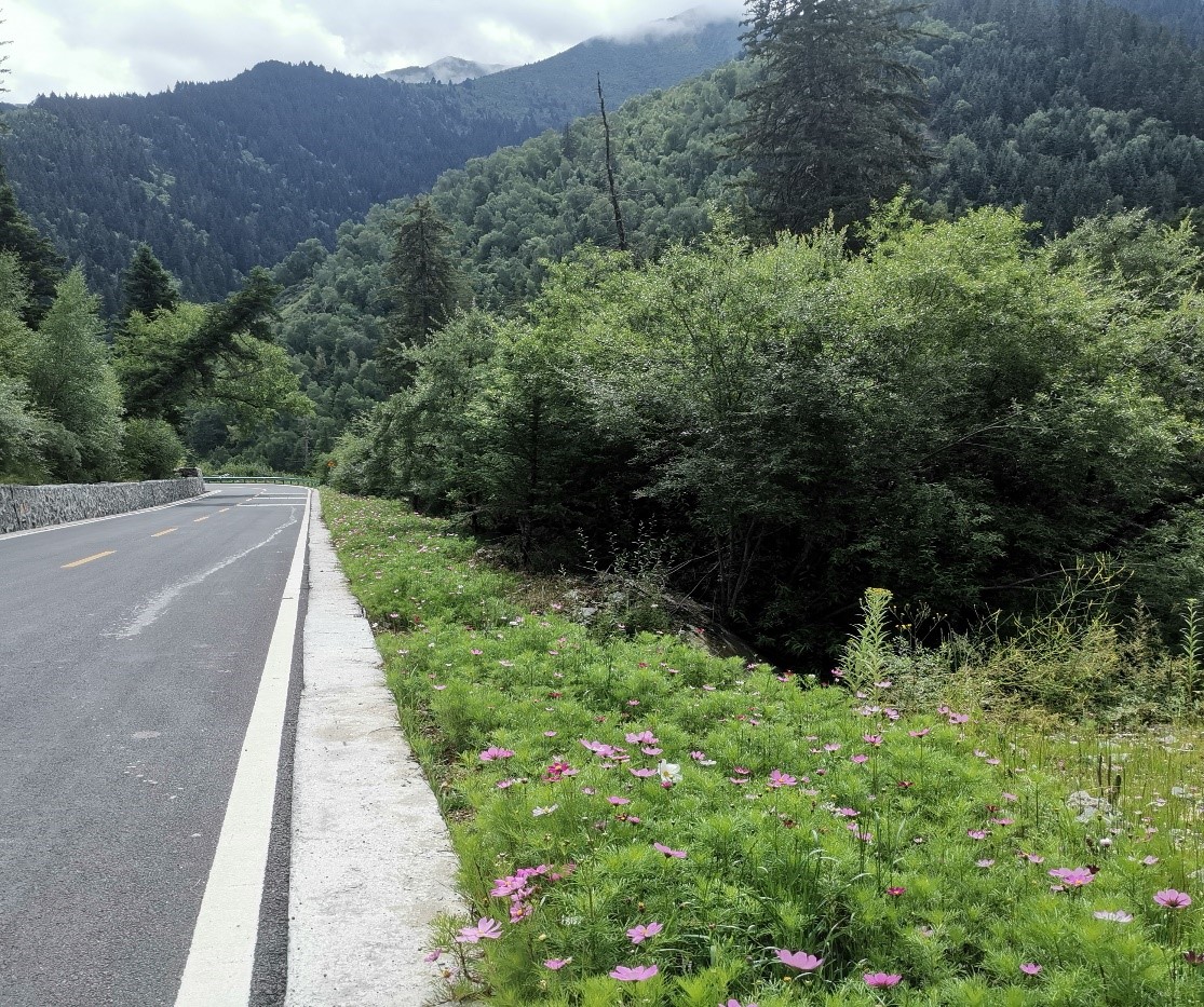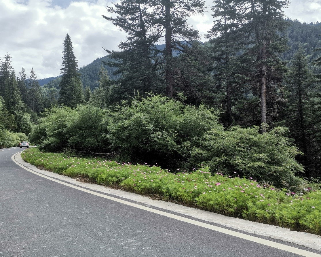 今年以來漳大路項目進(jìn)入收尾工作,主要是完善綠化工程施工。本項目綠化工程采取因地制宜的原則宜花則花,宜樹則樹,宜草則草,以見縫插綠的方式,大力實施增綠添花工程,在項目區(qū)有限的條件內(nèi)營造綠化及花卉景觀。將原設(shè)計沿線綠化中高山松、高山柳、沙棘、披堿草、紫花苜蓿等綠化植物取消,調(diào)整為木春菊、波斯菊、百日菊、孔雀草、垂穗披堿草、老芒麥、早熟禾等。漳大路指揮部本著努力提升旅游道路的對外形象,按照在“增綠、添花、提質(zhì)”的工作思路,點、線、面結(jié)合,以道路出入口、道路臨邊綠化為點,以漳大路段為線,以著力打造路段種植花卉為面,全力提升施工效果。當(dāng)前綠化效果已初步顯現(xiàn),預(yù)計在9月初開展綠化工程交工驗收。