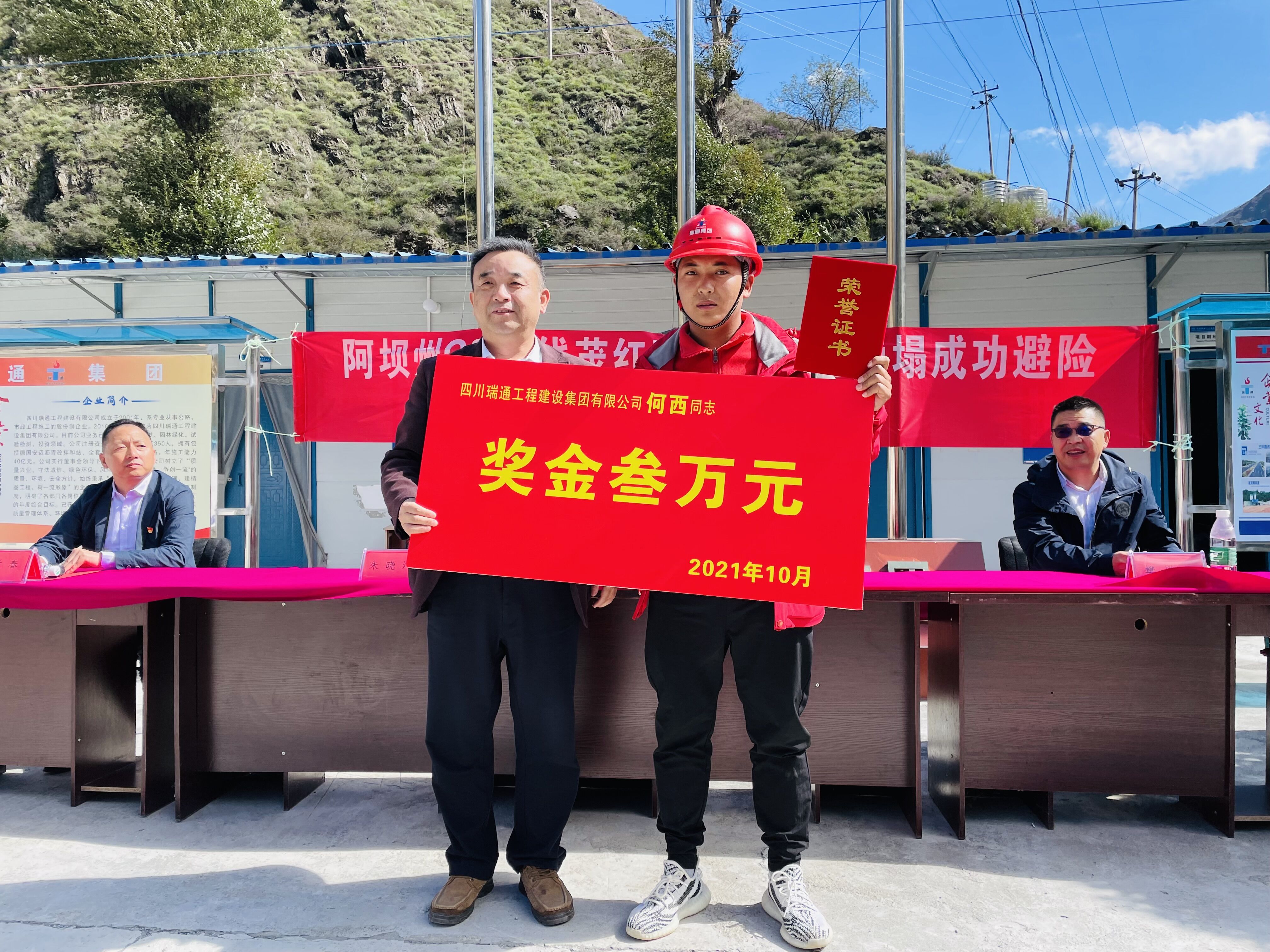 10月13日,省交通運輸廳、廳公路局、阿壩州交通運輸局、州公路局和興蜀公司對9月30日國道347線茂紅路成功防范避險一起山體高位崩塌災(zāi)害的施工單位(四川瑞通工程建設(shè)集團有限公司)和安全員何西進行表彰。表彰會由阿壩州公路局主持,州交通運輸局宣讀廳《關(guān)于茂紅路改擴建項目成功防范高位崩塌災(zāi)害情況通報》,廳公路局和興蜀公司分別頒發(fā)獎金和獎牌,安全員何西獲獎金3萬元和榮譽證書,施工單位項目經(jīng)理部獲5萬元獎勵。表彰會上,施工單位和安全員何西進行了發(fā)言交流,分享成功避險經(jīng)驗。