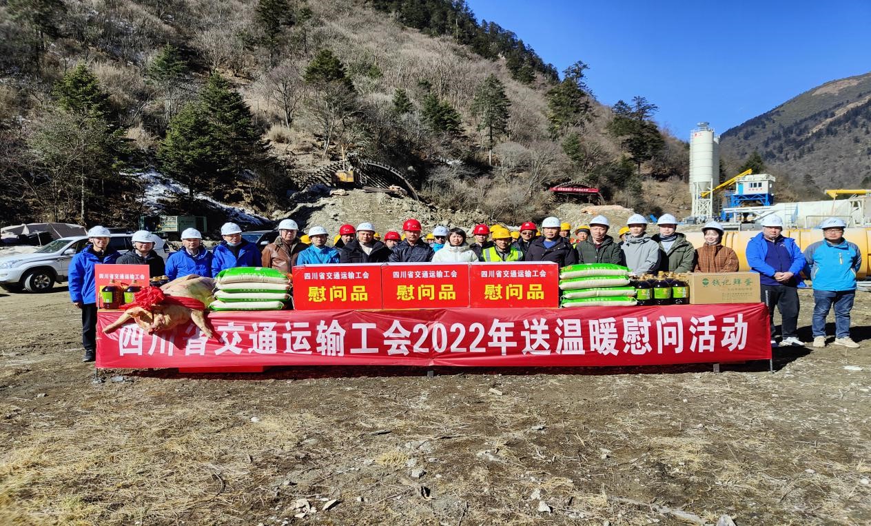 2022年1月18日,省交通運輸工會主席唐蓉華一行赴國道351夾金山隧道工程項目開展“送溫暖”慰問活動,看望慰問一線建設(shè)者,省交通運輸工會主席一行在夾金山隧道進口端對一線建設(shè)者發(fā)放慰問品,并囑咐大家一是在工作中要注意身體健康,做好防寒保暖工作;二是要以人為本,切實關(guān)心施工人員生產(chǎn)生活,營造良好的施工環(huán)境;三是提前祝夾金山隧道工程項目一線建設(shè)者們春節(jié)愉快。興蜀公司黨委書記董事長袁泉、副總經(jīng)理唐元華陪同慰問。