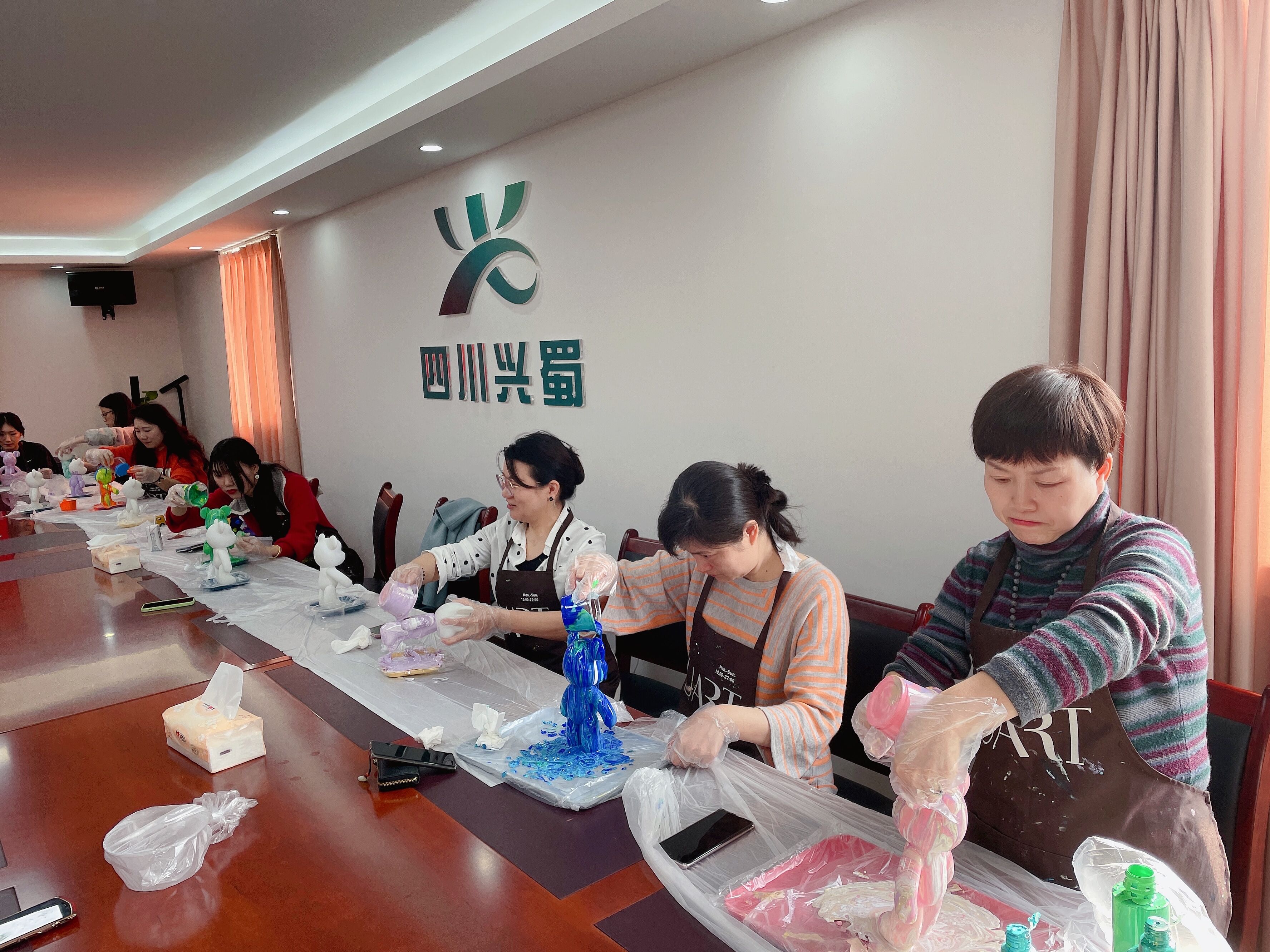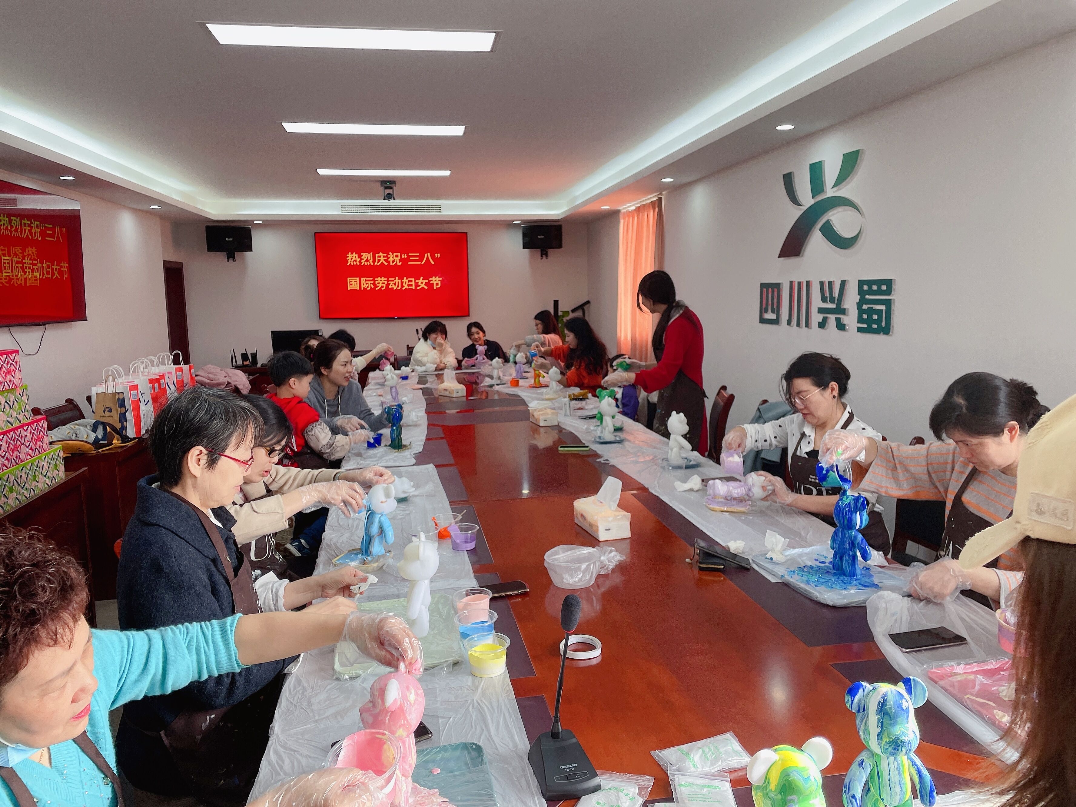 活動現(xiàn)場,老師一邊講解一邊進(jìn)行演示,讓大家詳細(xì)了解DIY手工的制作過程。隨后女職工們自行挑選喜歡的顏色開始制作,制作過程中大家互相幫助,有說有笑,活動氛圍十分融洽。最后,在大家的努力下,精美的流體小熊制作完成。