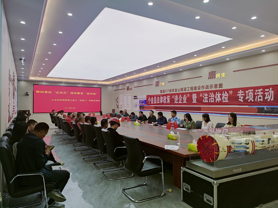 6月7日,阿壩州小金縣司法局、達(dá)維鎮(zhèn)公安局等單位赴國道351夾金山隧道項目組織開展法律政策“進(jìn)企業(yè)”暨“法制體檢”專項活動。此次活動通過靶向普法“點對點”、送法服務(wù)農(nóng)民工“面對面”方式開展普法活動,通過法制宣傳教育,營造工地法制氛圍,引導(dǎo)參建人員任何時候要依法辦事,以理性、合法的形式表達(dá)利益訴求,營造和諧文明工地,努力形成自覺學(xué)法、知法、懂法、守法、用法的良好氛圍。