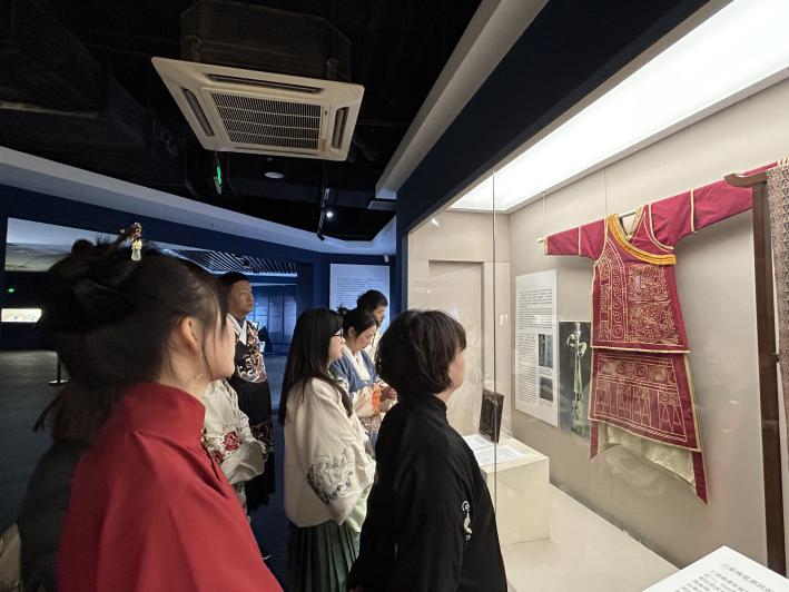 穿越千年,感受智慧流淌。在成都蜀錦織繡博物館,青年們身著漢服,體會(huì)蜀錦蜀繡的獨(dú)特文化魅力,品味神秘的古蜀文化想象、漢代的吉祥雋語、唐宋的胡風(fēng)交融、明清的繁復(fù)華美,領(lǐng)略了不同歷史時(shí)期蜀錦和蜀繡的風(fēng)采。