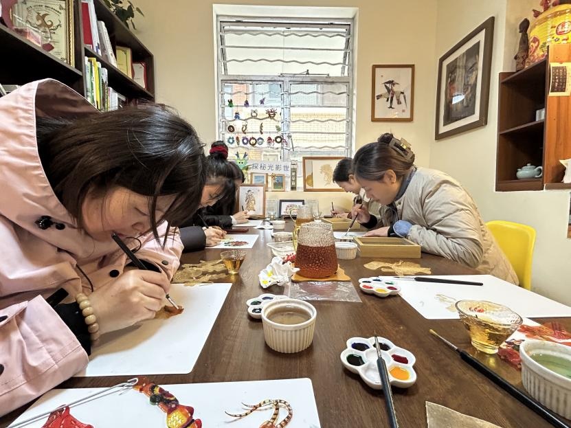 制作皮影,接受非遺熏陶。皮影戲是中國(guó)民間傳統(tǒng)藝術(shù),它集說、唱、演為一體,具有深厚的藝術(shù)內(nèi)涵和文化價(jià)值,也是本次活動(dòng)的重頭戲。在皮影制作工作室活動(dòng)中,專業(yè)老師先為大家奉上了一堂豐富的皮影知識(shí)宣講,增進(jìn)了大家對(duì)皮影的歷史淵源和制作工藝的了解。進(jìn)入實(shí)踐環(huán)節(jié),選好圖案后,在老師的指導(dǎo)下,青年們手持雕刻刀,認(rèn)真刻畫人物線條,再用色彩豐富的顏料賦予皮影鮮活的生命,每一個(gè)轉(zhuǎn)折都刻畫出對(duì)工藝的執(zhí)著,每一個(gè)細(xì)節(jié)都凝聚著對(duì)傳統(tǒng)的尊重。最后用細(xì)牛皮條搓成線將皮影人物各個(gè)關(guān)節(jié)部分的“骨 眼”綴結(jié),一件完整的皮影人即告完成。“學(xué)習(xí)皮影,不僅僅是學(xué)習(xí)一門技藝,更是深刻體會(huì)到一種精神,嚴(yán)謹(jǐn)認(rèn)真、精益求精、追求完美的工匠精神?!币晃粎⑴c活動(dòng)的青年干部在完成自己的皮影作品后感慨道。