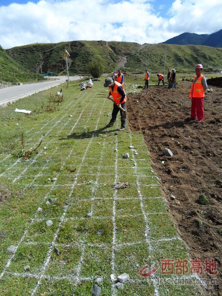 理亞路建設(shè)者劃出網(wǎng)格保護(hù)脆弱的高原生態(tài)草坪腐殖層