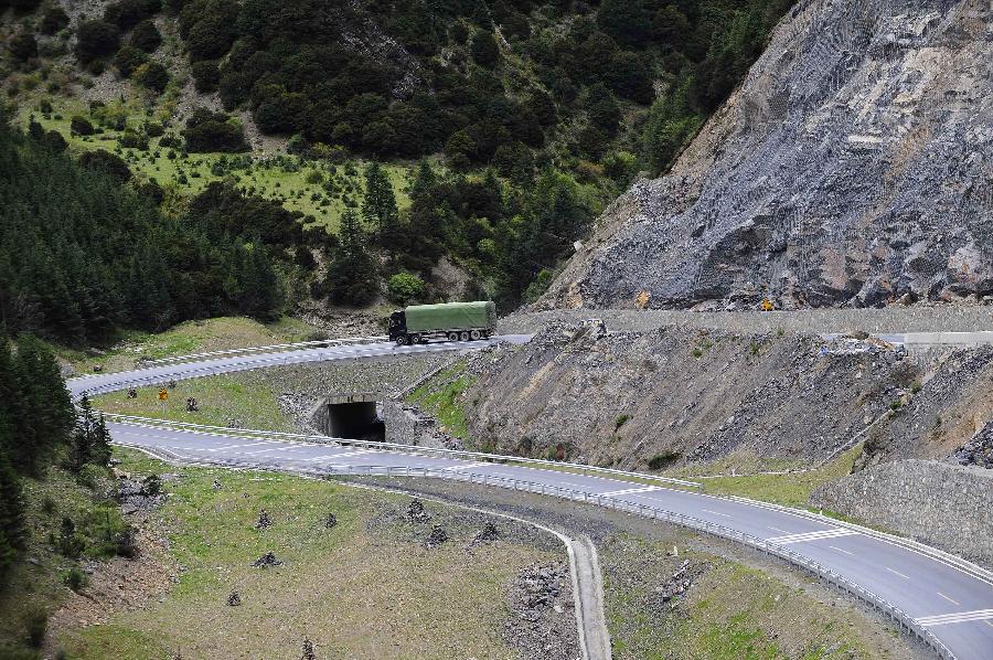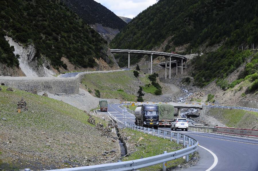 這是車輛在川藏公路東海路上行駛(2014年9月14日攝)。