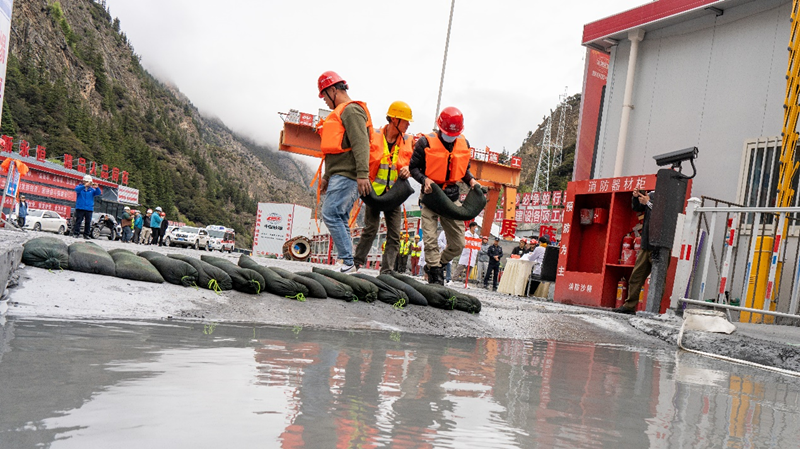 5月19日,興蜀公司代建國(guó)道351夾金山隧道項(xiàng)目開(kāi)展2023年地質(zhì)災(zāi)害暨防汛減災(zāi)應(yīng)急救援演練。演練分兩階段開(kāi)展,第一階段模擬因強(qiáng)降雨導(dǎo)致施工現(xiàn)場(chǎng)附近山體出現(xiàn)局部裂縫,存在滑坡隱患,現(xiàn)場(chǎng)先后展開(kāi)人員緊急撤離、險(xiǎn)情上報(bào)、山體變形監(jiān)測(cè)、險(xiǎn)情處置等演練步驟;第二階段模擬因強(qiáng)降雨導(dǎo)致夾金河水急速上漲,嚴(yán)重威脅工人駐地和施工現(xiàn)場(chǎng)安全,現(xiàn)場(chǎng)迅速開(kāi)展駐地及作業(yè)人員撤離危險(xiǎn)區(qū)域、險(xiǎn)情上報(bào)、堆碼沙袋、河道無(wú)人機(jī)巡查、水位實(shí)時(shí)監(jiān)測(cè)等演練步驟。通過(guò)此次演練活動(dòng),進(jìn)一步檢驗(yàn)了項(xiàng)目地質(zhì)災(zāi)害應(yīng)急救援預(yù)案的可行性,形成了統(tǒng)一領(lǐng)導(dǎo)、科學(xué)決策、處置有序的應(yīng)急管理系統(tǒng),顯著提升了項(xiàng)目應(yīng)對(duì)突發(fā)地質(zhì)災(zāi)害事件和風(fēng)險(xiǎn)防控能力。小金縣應(yīng)急管理局、縣交通運(yùn)輸局、達(dá)維鎮(zhèn)人民政府有關(guān)部門、夾金山醫(yī)療保障點(diǎn)、夾金山隧道項(xiàng)目各參建單位共60余人參加本次應(yīng)急演練。