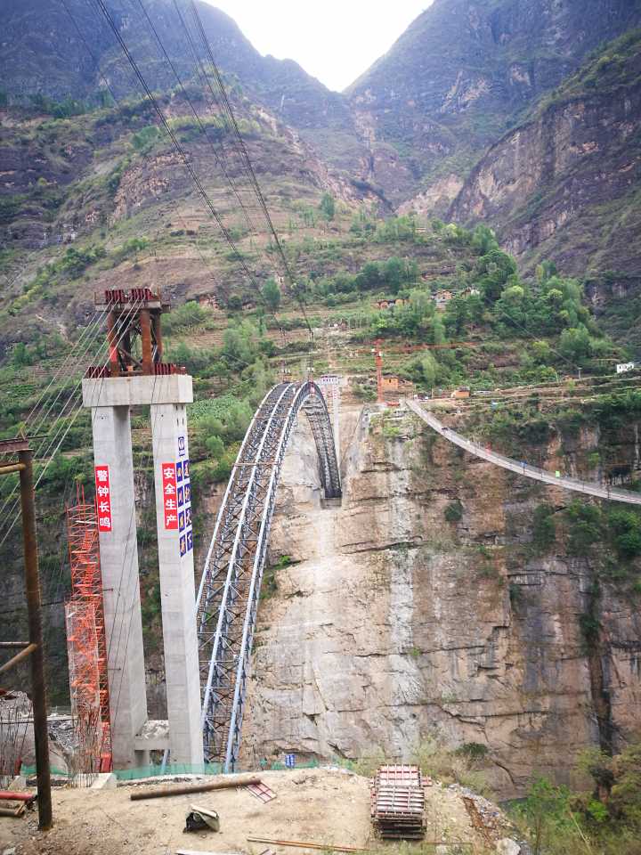 2017年4月12日,興蜀公司建設管理的涼山州布拖縣馮家坪金沙江“溜索改橋”工程項目鋼管勁性骨架主拱順利合攏,宛如金沙江上的一道彩虹,預示著“溜索時代”即將結束。