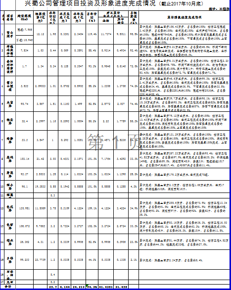 興蜀公司管理項目投資及形象進度完成情況(截止2017年10月底)