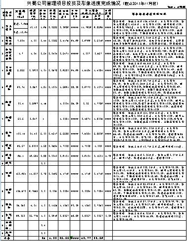 興蜀公司管理項(xiàng)目投資及形象進(jìn)度完成情況(截止2017年11月底)