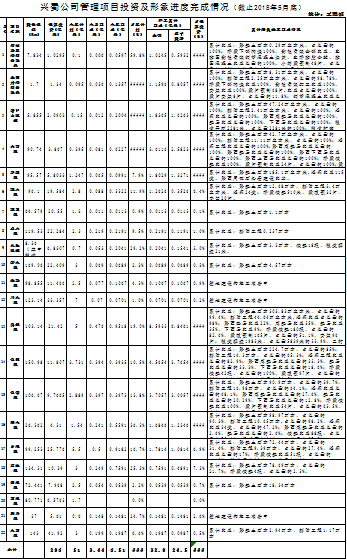 興蜀公司管理項目投資及形象進度完成情況(截止2018年5月底)