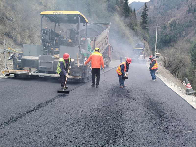 2021年4月7日,興蜀公司代建的國道347線茂紅路四標(biāo)段路面上面層AC-13瀝青砼路面試驗段順利完工,標(biāo)志著項目路面工程瀝青砼上面層施工正式開始。此次路面工程試驗段K128+700—K129+000,攤鋪長度300米,寬8.5米。AC-13瀝青砼上面層試驗段的順利施工將為下一步路面上面層大面積施工提供有力依據(jù)和技術(shù)指導(dǎo),并為6月30日完成目標(biāo)任務(wù)奠定堅實基礎(chǔ)。