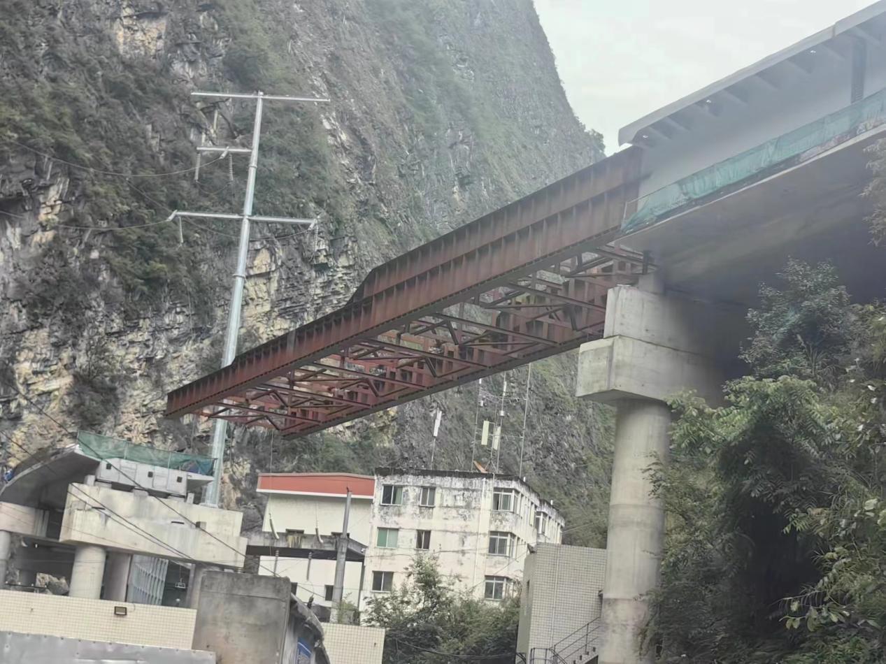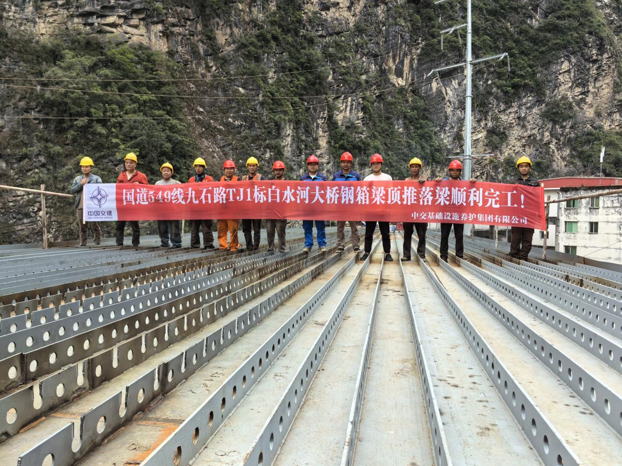2024年7月4日,國道549線九石路TJ1標(biāo)關(guān)鍵性節(jié)點(diǎn)工程——?dú)v時(shí)1個(gè)半月,長(zhǎng)58米、寬9米、重約400噸的白水河大橋鋼箱梁頂推落梁施工順利完成。
